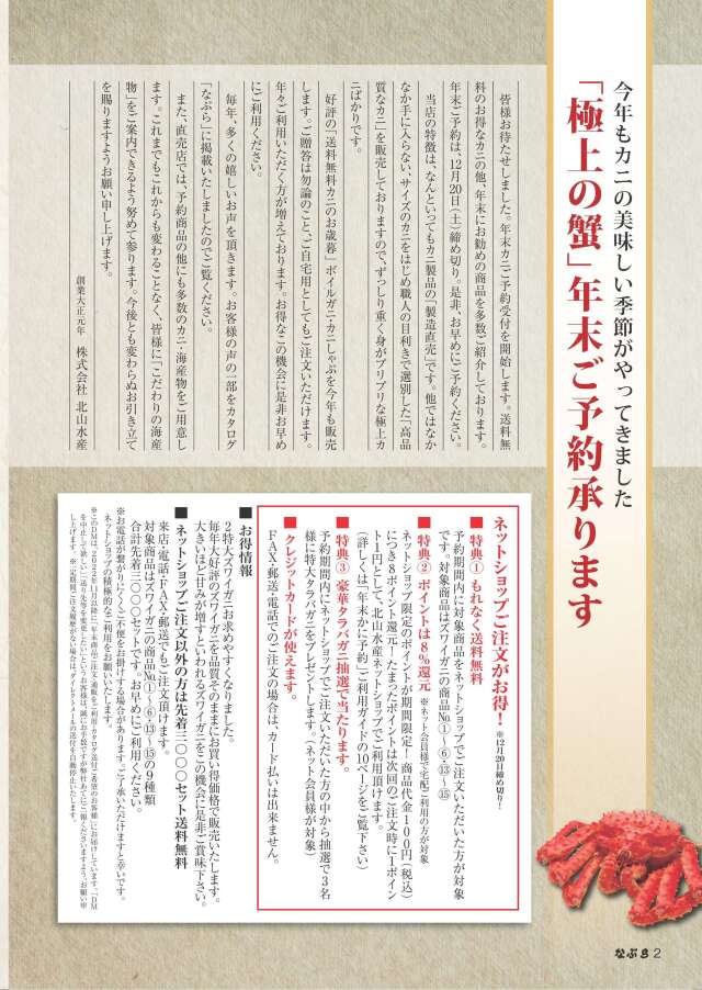 極上タラバガニ極上ズワイガニ極上カニシャブ甲羅海産物よくある質問年末予約ガイド|買い物かご